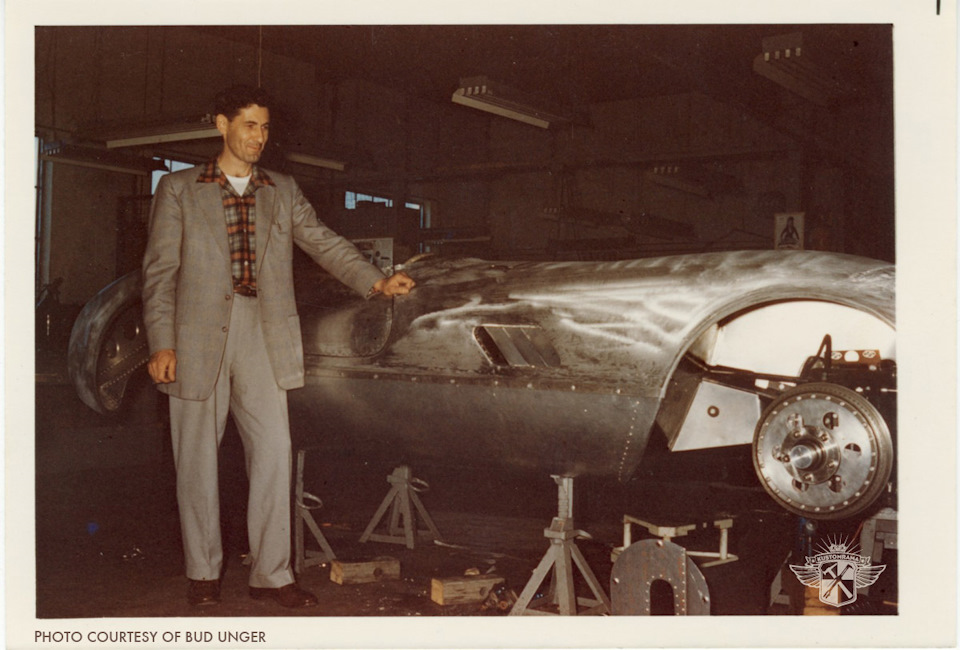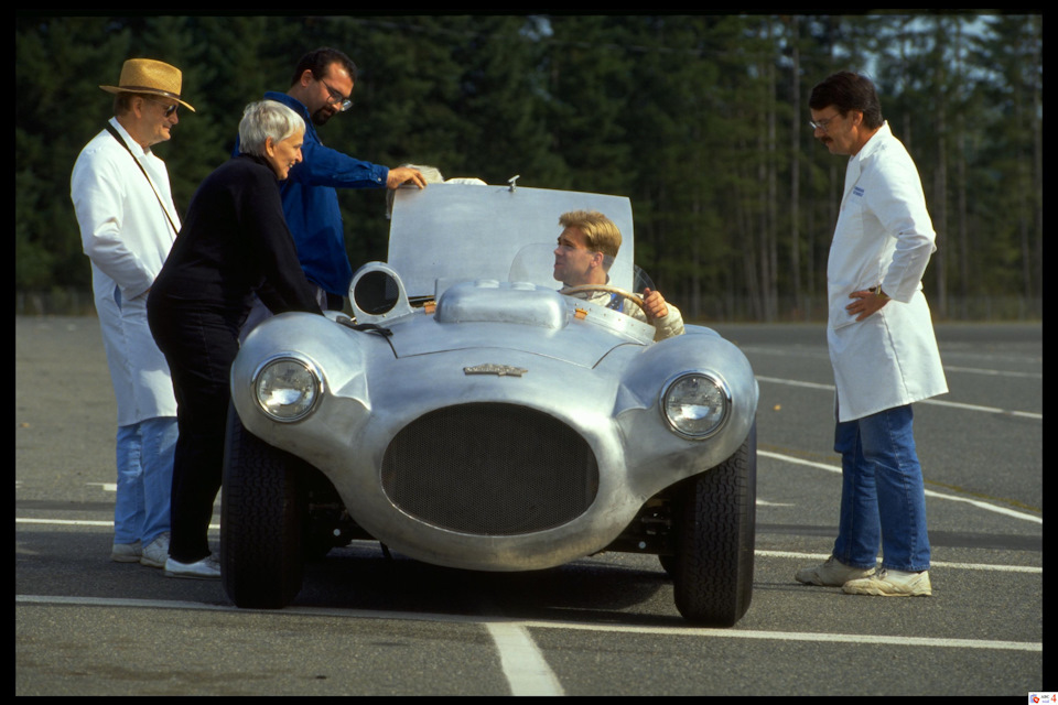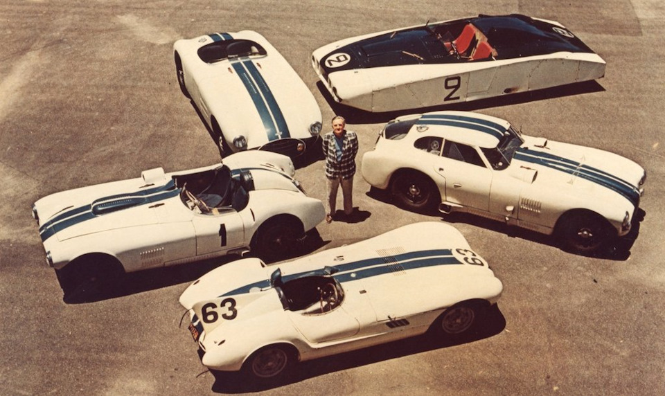 Бриггс Каннингэм в окружении своих творений (по часовой стрелке): Le Monstre, C-4RK, C-6R, C-4R, C-5R.