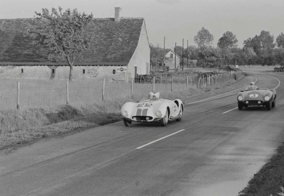 Ferrari 375MM в цветах Team Cunningham в Ле-Мане 1954 года. Воздухозаборники над фарами охлаждали тормоза.