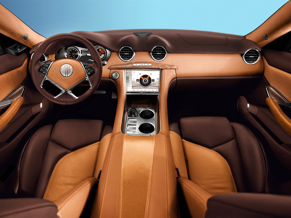 Появившись в виде концепта в счастливые докризисные времена и на волне начала массовой истерии экологичного тренда (не только в автопромышленности), Fisker Karma изначально планировался, как статус-символ для богатых людей, стремящихся подчеркнуть свою заботу об окружающей среде. Генрик Фискер отлично чувствовал целевую аудиторию “энвиронменталистов» и их вкусы, поэтому не ограничился гибридными агрегатами, чтобы хозяин Karma мог долго и с гордостью рассказывать знакомым об уникальности машины. В лакокрасочное покрытие “алмазная пыль” добавлялись частицы стекла из переработанных бутылок. Дерево в салоне добывалось разными способами в зависимости от комплектации: Eco-Standard использовали топляки из озера Мичиган; Eco-Chic — древесину, оставшуюся после лесных пожарах Калифорнии; а для Eco-Sport применяли деревья, поваленные ураганами. Для кожаного салона Eco-Sport (две остальные комплектации Karma вместо кожи использовали достаточно необычные ткани) материалы приобретались только у шотландской компании Bridge of Weir, единственного в мире производителя кожи с “низкими выбросами углерода при изготовлении”. Кроме “зеленых” методов обработки и использования бракованных частей шкуры (неидеальность кожи тоже должна была добавлять экологичного шарма), Bridge of Weir изначально приобретали шкуры только у тех поставщиков, которые соблюдают «пять прав животных»! И когда наводнение в Шотландии уничтожило партию кожи перед отправкой, это привело к очередной задержке в сборке версии Eco-Sport, поскольку альтернативного поставщика не было.