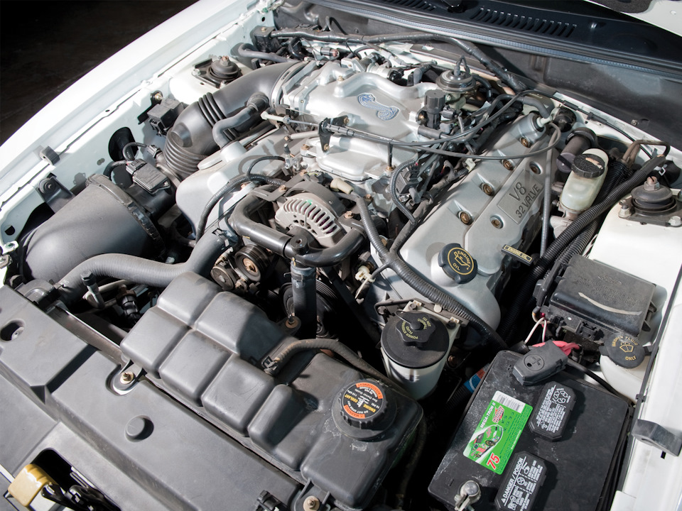 Зато для SVT Cobra это стало новой ступенью развития. Дело в том, что с 1993 года на Lincoln Mark VIII устанавливался мотор того же семейства, но в конфигурации DOHC, то есть с 4 распредвалами и 4 клапанами на цилиндр. В отличие от машин 1993-95 годов, новую Cobra разрабатывали не инженеры SVE, а сами Team Mustang — команда, ответственная за всю модель. Они и предложили использовать DOHC-мотор на SVT Cobra 1996 года, да еще и с некоторыми доработками. Усиленный алюминиевый блок цилиндров заказали в Италии, кованый коленвал – в Германии. Для Cobra улучшили головки блока и разработали сложный впускной коллектор, который c помощью дополнительных заслонок открывал доступ воздуха через вторые впускные клапаны после 3250 об/мин, тем самым улучшая характеристики на низких оборотах. В результате этих манипуляций, мощность выросла до 305 л.с. – это небольшой прирост по сравнению с 285 л.с. у Mark VIII, но усилия позитивно сказались на надежности.