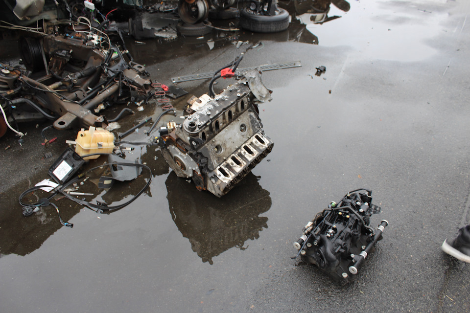 Привезенная техника инвентаризируется — на каждой машине есть порядковый номер и, обычно, название модели и года. Что касается самой техники, то тут интересно: не стоит ожидать, например, найти Chevrolet Camaro или Pontiac Firebird 1998-2002 годов с 5,7-литровым LS1 — даже если их бьют, эти моторы будут стоить дорого и машина с ним просто не попадет на разборку. А вот 6-цилиндровые разновидности — в ассортименте, «бери не хочу» (чем я и воспользовался), как и пикапы/SUV тех же годов с V8 LS-серии.