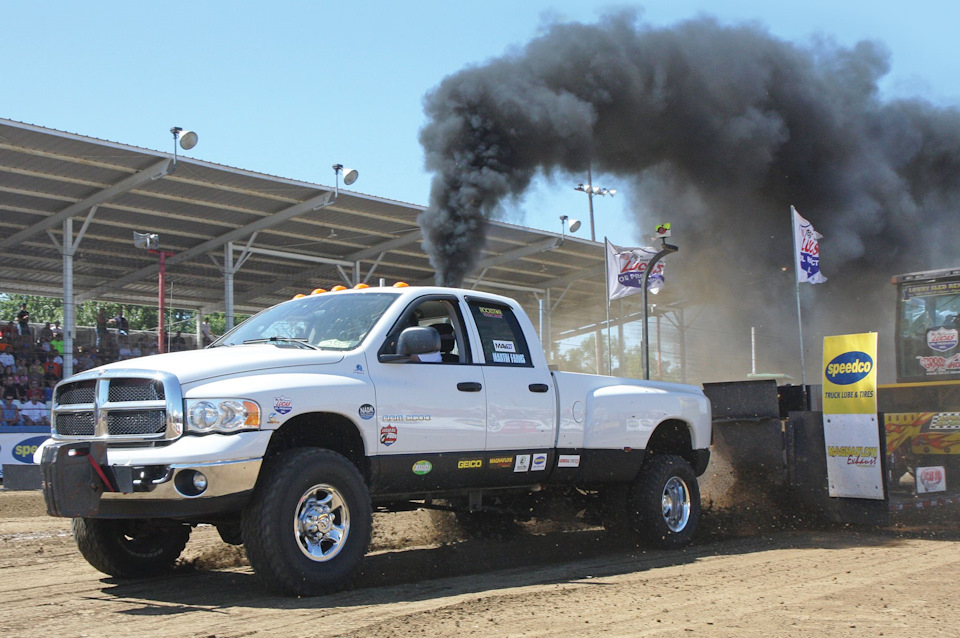 Первый — truck pulling, как разновидность более распространенного tractor pulling. Суть соревнования в том, чтобы тащить за собой на прицепе специальные сани (sled) с двигающимся грузом — чем дальше проезжает тягач, тем тяжелее ему тащить каждый следующий метр. Побеждает тот, кто протащит самый большой груз на самую большую дистанцию, обычно не превышающую 100 метров: