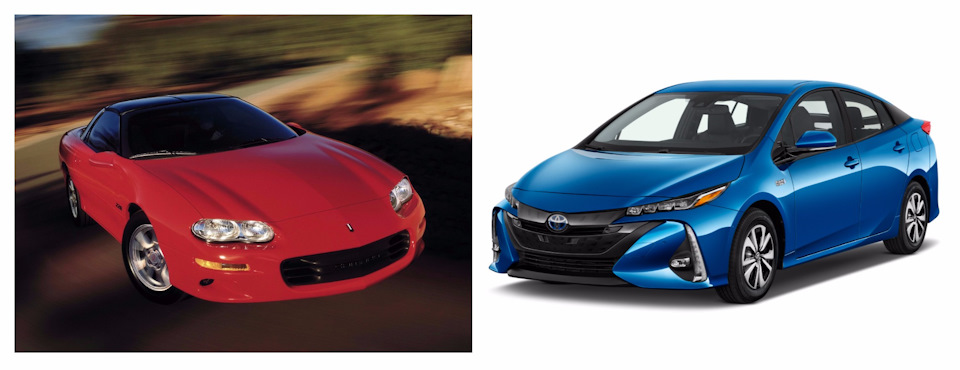 Chevrolet Camaro Z28 (2002) и Toyota Prius (2017)