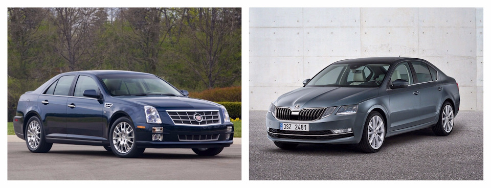 Cadillac STS (2011) и Skoda Octavia (2017)