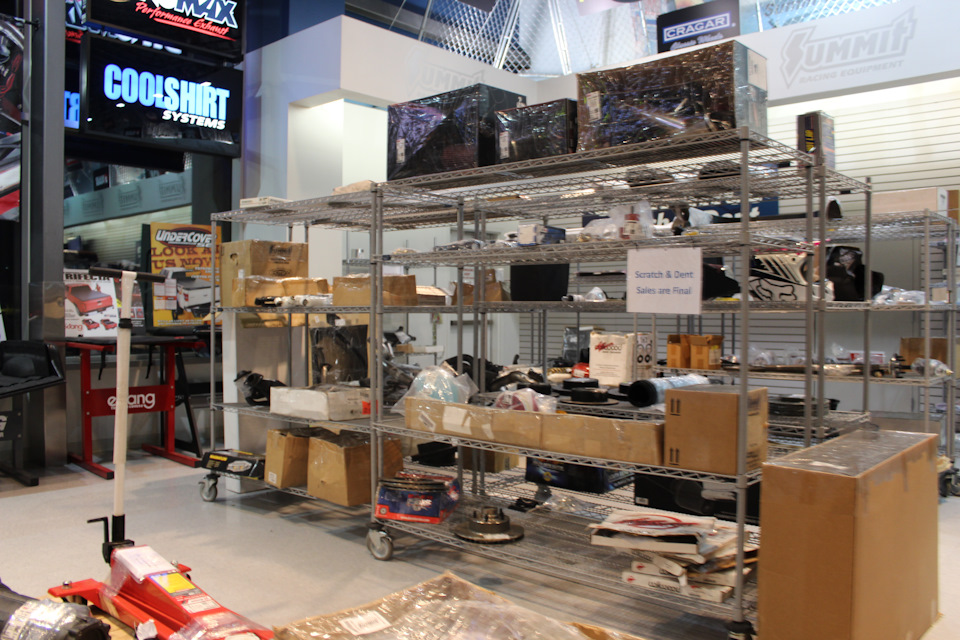 Это сладкое слово халява. Неприглядные стеллажи в дальнем углу — отдел Clearance, то есть распродажа. И, надо сказать, попадаются очень аппетитные цены — впрочем, этим славен и виртуальный аналог этого отдела на сайте Summit Racing…