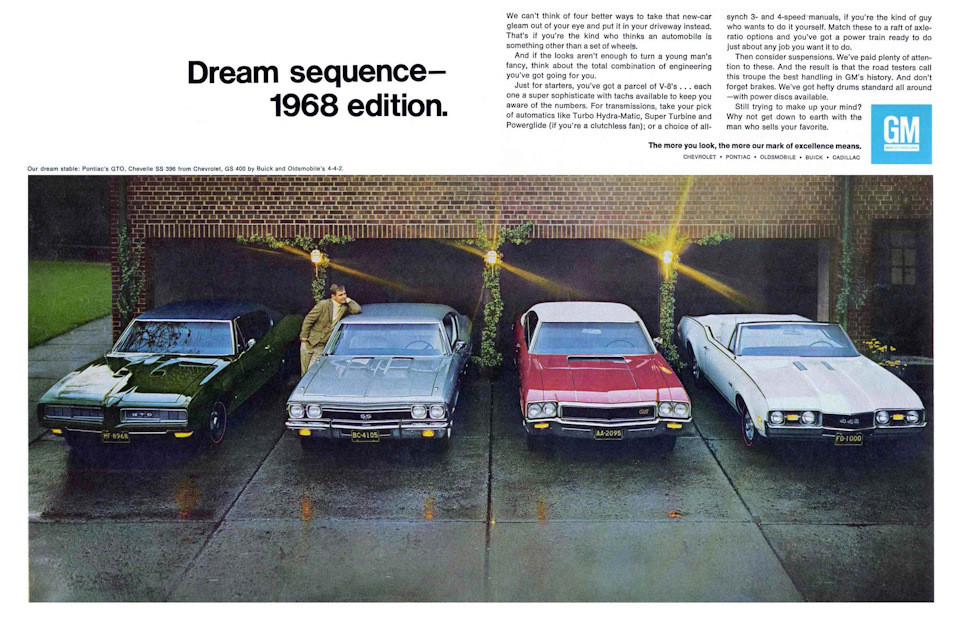 Четыре мускул-кара General Motors 1968 года. Через десять лет они будут никому не нужны, а через 40 — станут звёздами аукционов.