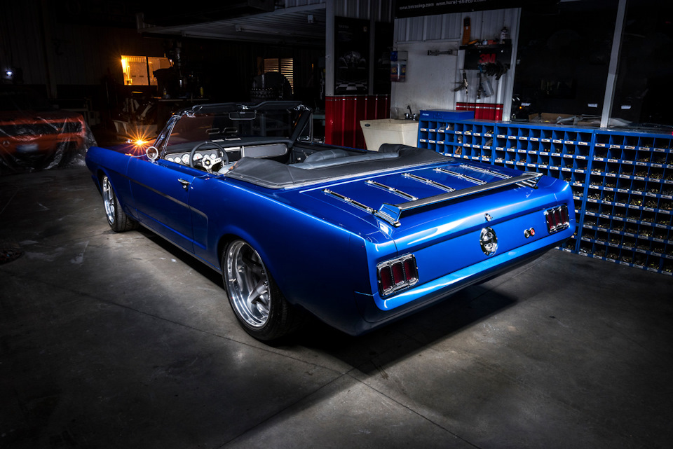 На SEMA 2016 года братья Ринг завели новую для себя традицию — презентовать машины в стиле производителей, то есть торжественно снимать покрывало с автомобиля, который раньше ещё никто публично не видел. И первой такой машиной стал их первый кабриолет под названием Ballistic, построенный на базе Ford Mustang 1965 года. Эту машину делали согласно конкретным пожеланиям заказчика, поэтому несмотря на использование карбоновых кузовных панелей с 10-сантиметровым расширением, она получилась несколько менее навороченной, чем большинство проектов последних лет. Впрочем, все фирменные детали работ Ringbrothers в ней присутствуют, не бросаясь в глаза, как и высочайшее качество сборки. Канонам стиля соответствует и начинка: 5,8-литровый компрессорный мотор позаимствован у современного Shelby GT500, так что в эксплуатации Ballistic не хуже новой машины.