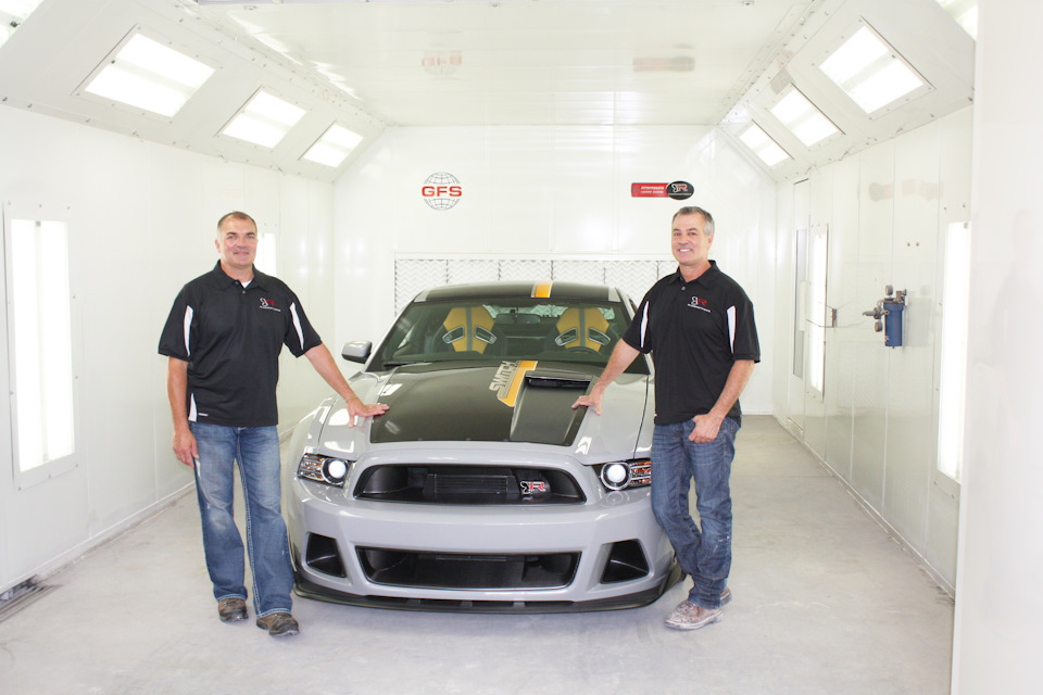 Братья Ринг позируют в покрасочной камере с одним из своих проектов другого рода — 2013 Mustang Switchback, который не имеет отношения к Pro-Touring