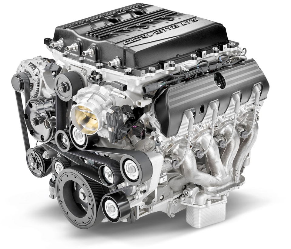 LT4. В условиях непрекращающейся гонки мощностей, которую мы имеем счастье наблюдать последние годы, General Motors не могли позволить себе растягивать разработку компрессорной версии Gen V. Уже в 2015 году появился Corvette Z06, оснащенный двигателем LT4. Этот RPO-код тоже уже использовали в 1996 году для заряженной версии прошлого LT1, но на этот раз инженеры не стали размениваться улучшениями параметров атмосферного двигателя. Поэтому, новый LT4 стал последователем LS9 и LSA: 6,2-литровый мотор с приводным нагнетателем Eaton TVS типа «Roots» в развале блока. Конечно, это потребовало существенных изменений вроде усиленных ГБЦ, титановых впускных клапанов, выхлопных коллекторов и нержавеющей стали, кованых шатунов и поршней. Степень сжатия снизили до 10,0:1 — много для двигателя с наддувом по меркам прошлых поколений, но прямой впрыск сделал возможным и это. Экзотическая ранее система смазки с сухим картером, использовавшаяся только в LS7, стала стандартной.