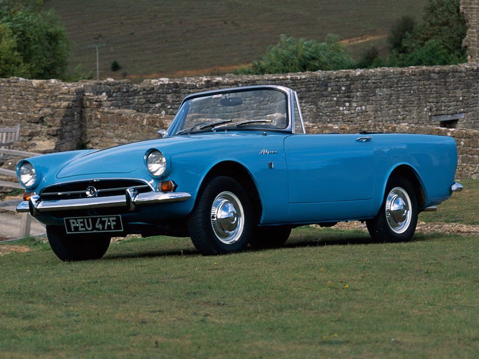 После успехов машин Sunbeam-Talbot в Альпийском ралли в начале 1950-х годов, в ассортименте появился родстер Sunbeam Alpine, впервые без суффикса «-Talbot» в названии. Эта машина продержалась в производстве с 1953 по 1955 год, а затем ее яркое имя возродили в 1959-м для совершенно нового родстера. Согласно политике корпорации, в качестве основы для нового Alpine ради экономии взяли компактный седан Hillman Minx (вернее, его более престижного соплатформенника — двухдверный хардтоп Sunbeam Rapier), но лёгкий открытый кузов позволил автомобилю быть достаточно резвым и хорошо управляемым — качества, традиционно ценимые в британских спортивных машинах. Длина автомобиля составляла всего 3,9 метра, колесная база — 2,16 м, а масса — 1020 кг. Новый Alpine позиционировался, в первую очередь, для рынка США, где до этого неплохо продавалось и первое поколение. Так что дизайн заказали у студии Рэймонда Лоуи и он напоминал уменьшенную копию популярных тогда американских машин в аэрокосмическом стиле с хвостовыми килями. В сравнении с другими родстерами, Alpine предоставлял достаточно комфорта: например, адекватный отопитель, удобную складную крышу и, впервые среди британских «одноклассников», полноценные боковые стекла с подъёмниками. Интересно, что разработку и первоначальное производство Alpine группа Rootes заказали другому производителю — Armstrong-Siddeley и лишь убедившись в жизнеспособности конструкции перенесли выпуск на свой завод к 1962 году.