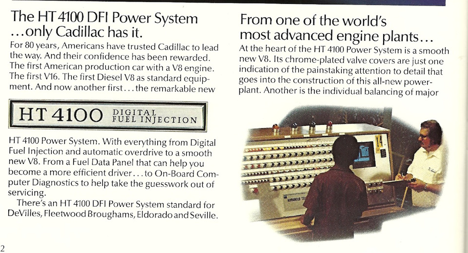 Слабый двигатель был одной из двух главных претензий всех обозревателей к Allante, так что даже с полноценным впрыском HT-4100 продержался на этой модели только 1987-88 годы. Впрочем, в остальных Cadillac время HT-4100 закончилось ещё раньше: 135-сильный моноинжекторный мотор выпускался с 1982 по 1987 год, а затем его сменил 4,5-литровый вариант.