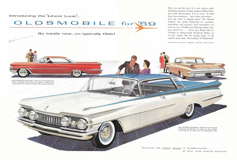 Oldsmobile 98 (справа) и Super 88 (справа) 1959 модельного года, где дебютировал Rocket 394
