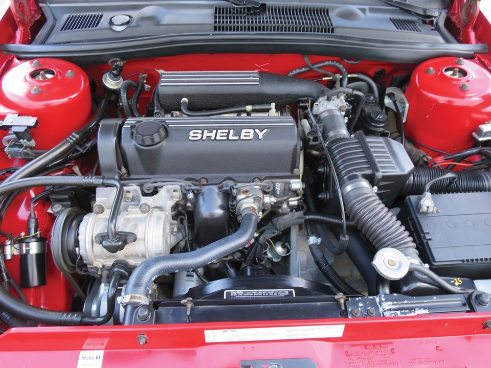 Но другой класс авто позволил предложить иные преимущества. Внутри Shelby сделали, наконец-то, очень комфортную машину. Список стандартного оборудования включал: кондиционер, центральную консоль с подлокотником, верхнюю консоль с компасом и термометром, подсветку зеркал в солнцезащитных козырьках, качественную шумоизоляцию, набор дополнительных лампочки подсветки в салоне, электропривод зеркал заднего вида и дверных стекол, центральный замок, водительское кресло с электрорегулировками, обогрев заднего стекла, складную спинку заднего дивана и регулируемую по наклону рулевую колонку. Увы, приборная панель не предполагала наличия датчика давления наддува. Зато сохранилось фирменное обтянутое кожей рулевое колесо с подписью Шелби, а на автомобилях с механической КПП педали заменялись для большего удобства одновременного нажатия на газ и тормоз правой ногой.