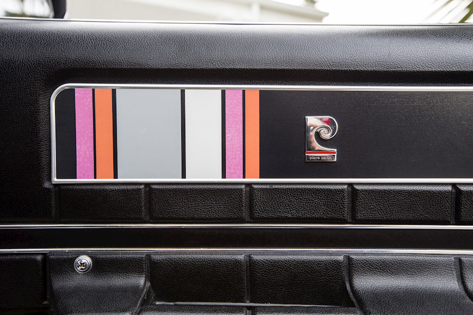 Как и планировал французский маэстро дизайна, в интерьере использованы тканевые полосы оранжевого, сиреневого, белого и серебристого цветов, сшитые с основной нейлоновой обивкой черного цвета. Полосы проходили по всем креслам геометрическими фигурами и продолжались на потолке. В довершение комплекта, на дверных панелях мотив повторялся. Там же располагались хромированные эмблемы Pierre Cardin – такие же, как на передних крыльях. Рекламный проспект AMC незамысловато провозглашал: «Только Пьер Карден может заставить кресла выглядеть столь элегантно, дверные панели столь высококлассно, а потолок столь шикарно!». Производство специфической обивки доверили компании Chatham Mills из Северной Каролины.
