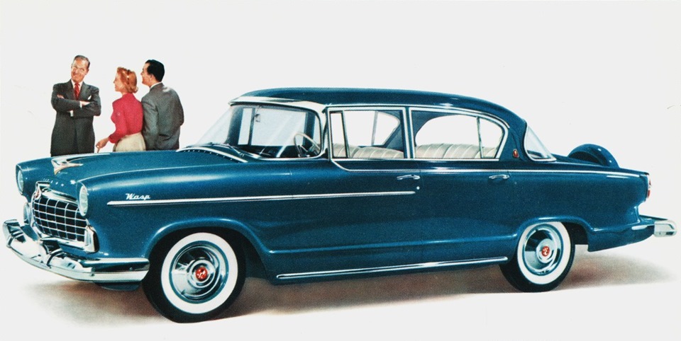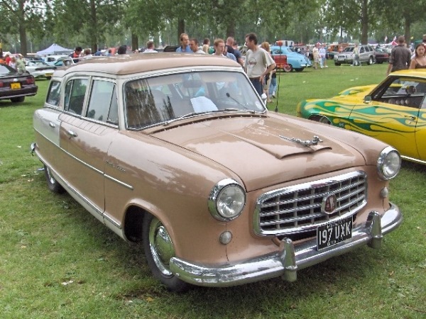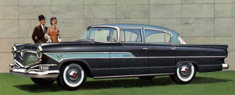 Самую младшую модель в ряду Hudson – компактный Jet, который был бы неплохим автомобилем, если бы не вогнал компанию в финансовую могилу, благоразумно заменили действительно великолепным продуктом Nash под названием Rambler. История этого первого «настоящего» компактного автомобиля Америки – тема для отдельного исследования, но следует отметить три момента. Во-первых, именно за счет отличных продаж Rambler корпорация Nash-Kelvinator смогла выступать в переговорах по объединению с Hudson с позиции силы. Во-вторых, в отличие от Wasp и Hornet, переделывать дизайн Rambler не стали и в 1955 году дилеры Hudson получили ту же машину, что и дилеры Nash, но с красными эмблемами в виде буквы «Н» на решетке радиатора и колесных колпаках. Если сейчас «бэдж-инжиниринг» давно привычен, то для 50-х годов столь открытый ребрендинг был радикальным ходом. В-третьих, если Hudson Jet в 1954 году было произведено 14224 экземпляра, то Hudson Rambler годом позже произвели 25214 штук – это наглядно демонстрирует, насколько удачный автомобиль получился у Nash. Кроме того, с эмблемами Hudson еще в 1954 году появились и Metropolitan – разработанные Nash, но производимые в Великобритании на заводе Austin и импортируемые в США крохотные по местным меркам субкомпактные автомобильчики. В 1955 году их удалось продать порядка 4000 штук.