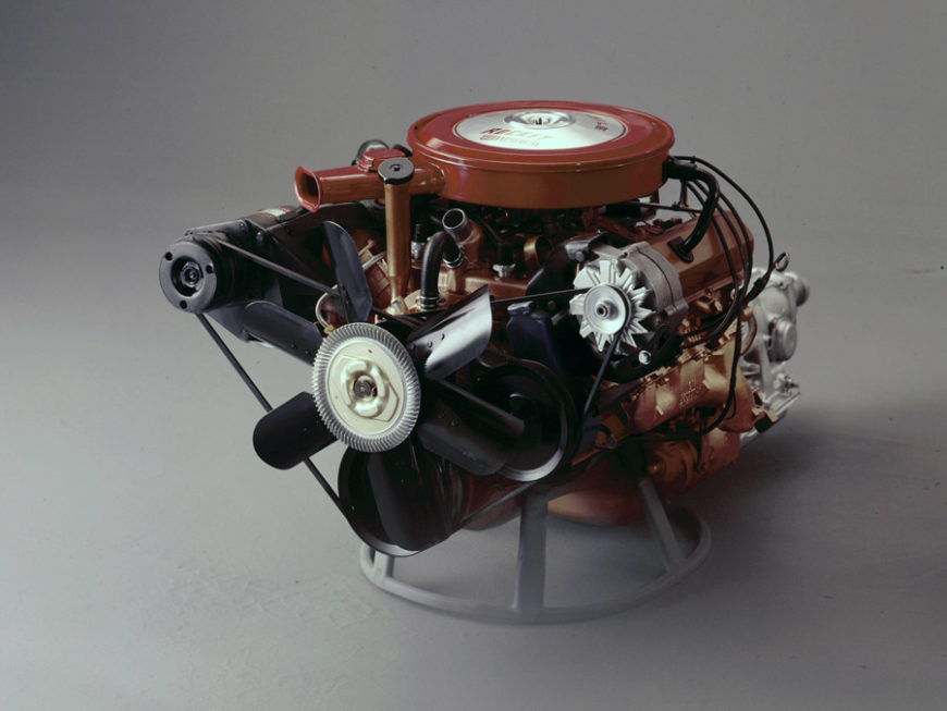 В 1964 году, не изменяя общей схемы и многих ключевых деталей, инженеры Oldsmobile заметно переработали свой существующий мотор Rocket V8 — например, сделали его легче в среднем на 50 кг…